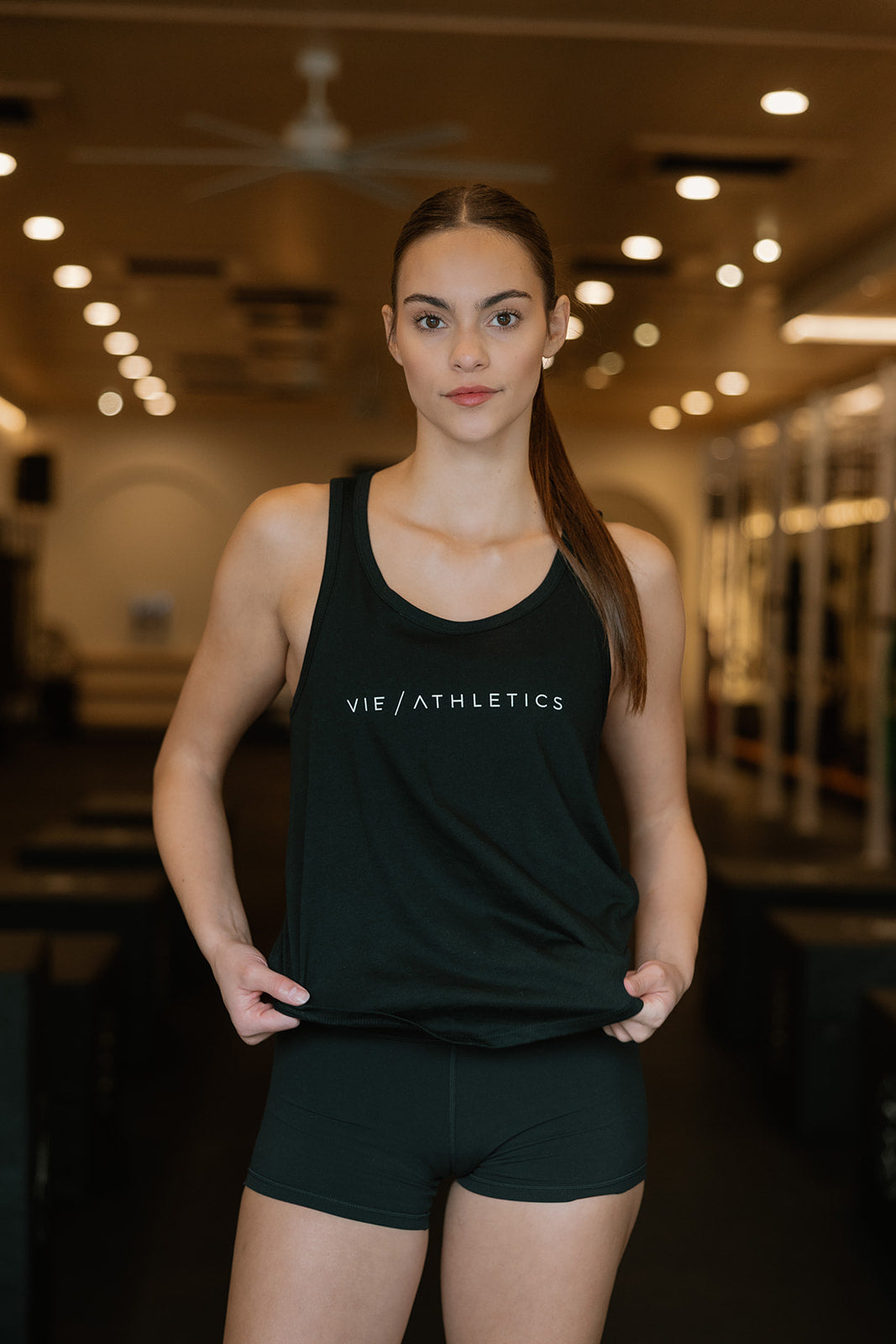 The Studio Tank blends sleek performance with effortless wear, perfect for everything from strength training to slow mornings. Lightweight, breathable, and buttery soft, it moves with you while keeping its shape through every rep, stretch, and wash. The minimalist Vie Athletics front print is a quiet reminder of the strength you’re building—inside and out.